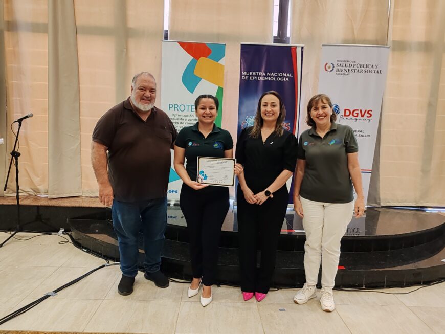 Recibieron mención de honor los trabajos sobre “Estudio epidemiológico que busca determinar la circulación del patógeno zoonótico del virus de la influenza aviar en Aves Silvestres en Paraguay – Periodo de estudio de marzo a noviembre de 2023”, de Wilfrido B. Sosa Yubero, Marlene Jaquet; y “Estudio entomo-epidemiológico de la enfermedad de Chagas, en comunidades indígenas del distrito de Bahía Negra, departamento de Alto Paraguay, 2024”, elaborado por Leticia M. Roa, José A. Montiel, Laura Y. Benítez, Berta Paredes, Martha C. Bazzano, Vidalia Lesmo, Blanca E. Gaona, Diego A. Giménez y Ana E. Candia.