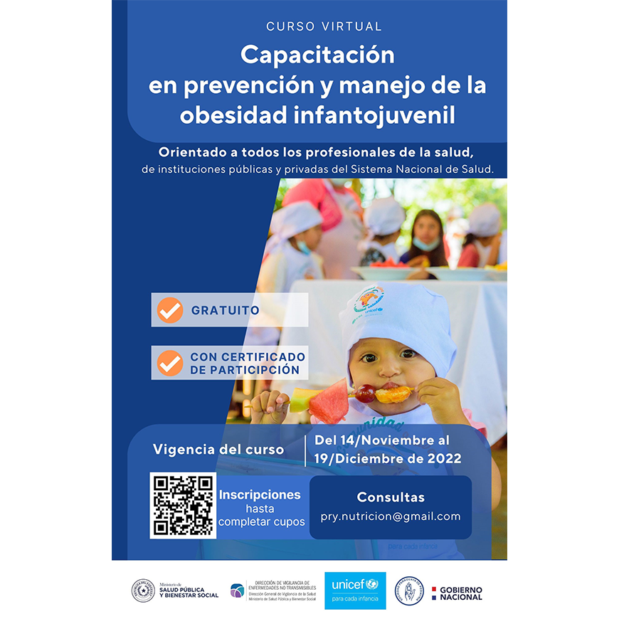 El curso está dirigido a los profesionales del área de la salud, así como a líderes y referentes de los recursos humanos en salud del Paraguay, con el fin de fortalecer y desarrollar las capacidades de los prescriptores en la prevención y el tratamiento de la obesidad infantojuvenil.