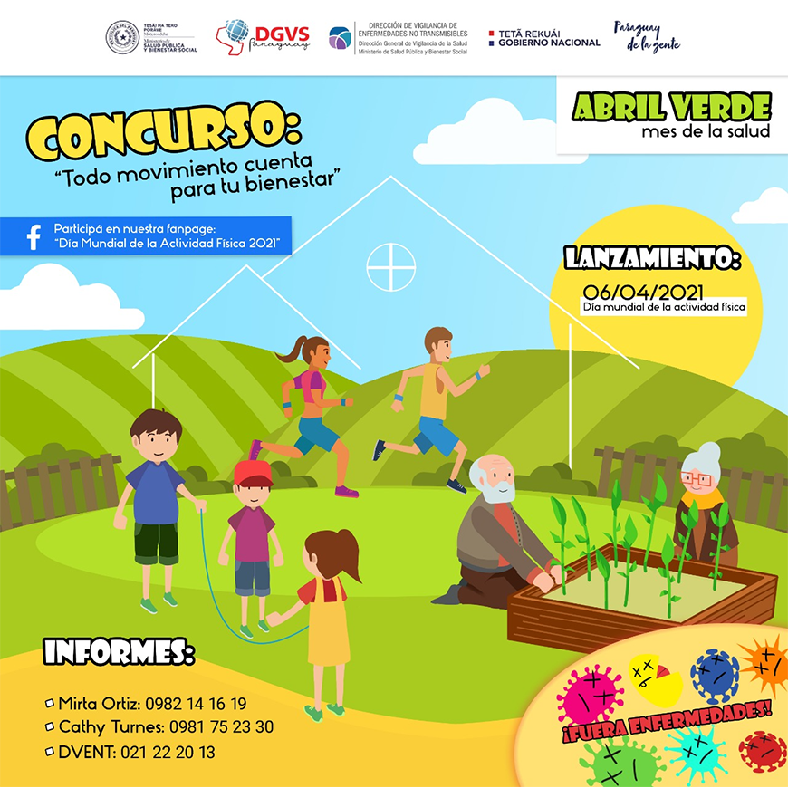 Alentá a tu familia y amigos a participar del concurso y a mantenerse activos como una estrategia para fortalecer el sistema inmunológico y ayudar a prevenir numerosas enfermedades como la obesidad, diabetes mellitus del adulto, hipertensión arterial, depresión, estrés por ansiedad, crisis de pánico, infartos cardíacos y algunos tipos de cáncer, entre otras afecciones.