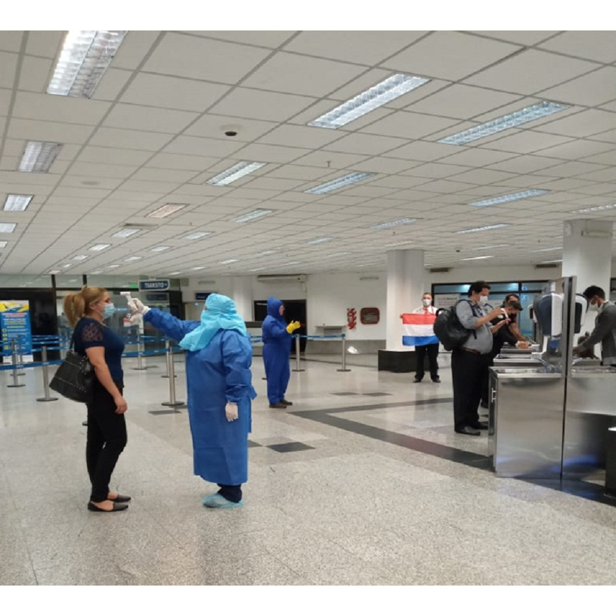 Luego de esto se dio el cierre de fronteras a nivel global, periodo en que solo llegaban al país los vuelos humanitarios con centenares de paraguayos repatriados de diferentes partes del mundo: de Miami – Estados Unidos, de España y otros, razón por la que se intensificaron los controles en el aeropuerto Silvio Pettirossi, con la colaboración de la Dirección Nacional de Aeronáutica Civil (DINAC), la Dirección General de Migraciones y empresas aéreas hacíamos los controles y contábamos con el apoyo del Consejo de Defensa Nacional (CODENA) en la distribución de los viajeros en albergues, hoteles salud y domicilio, para el cumplimiento del aislamiento preventivo.