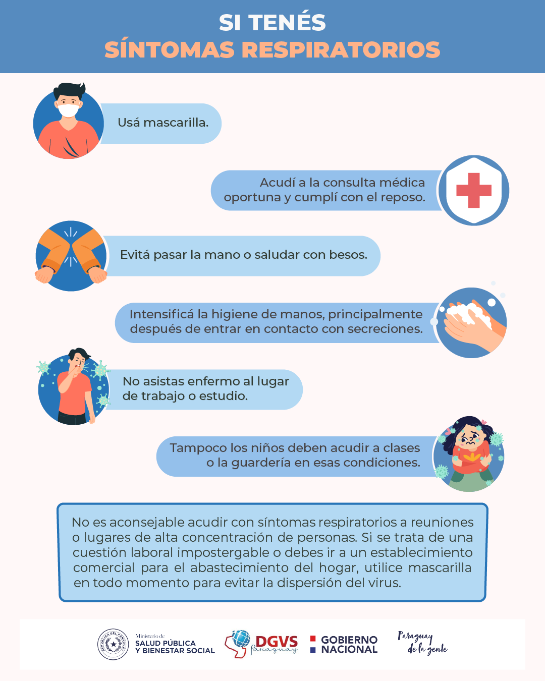 - Si estás con síntomas respiratorios, usá mascarilla, consultá y reposá.