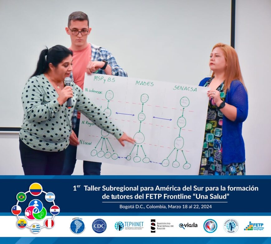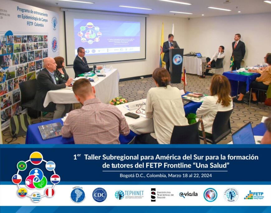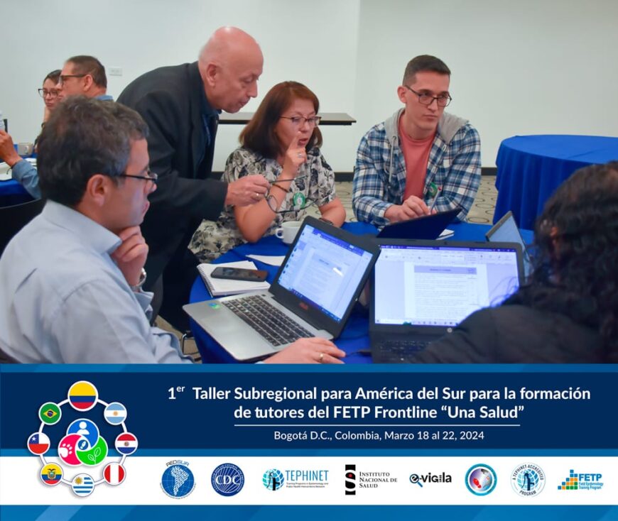 Recientemente se llevó a cabo el Primer Taller Subregional para América del Sur, en la ciudad de Bogotá, Colombia. La actividad estuvo orientada a la formación de tutores del Programa de Entrenamiento en Epidemiología de Campo (PEEC o FETP por sus siglas en inglés) Frontline “Una Salud”, con el objetivo de fortalecer las capacidades del capital humano en el área de epidemiología.