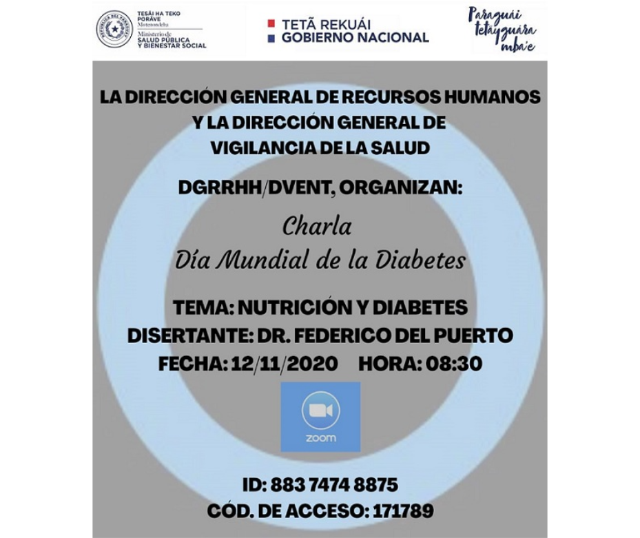 Con el objetivo de orientar sobre prácticas para mejorar la salud y prevenir enfermedades crónicas como la diabetes, este jueves 12 de noviembre se dictará una charla sobre “Nutrición y Diabetes”, que será expuesto por el Dr. Federico del Puerto, coordinador médico del Programa Nacional de Diabetes.