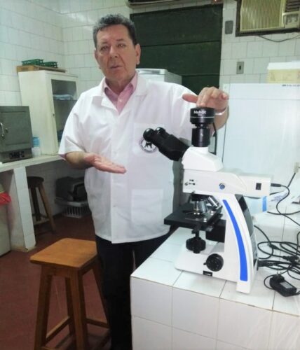 Luego de 33 años, el Programa Nacional de Enfermedades Zoonoticas y Centro Antirrábico Nacional (PNEZ y CAN) dispone de un nuevo microscopio, con tecnología de punta. Se trata de un microscopio de inmunofluorescencia, empleado para el diagnóstico de la rabia y otras enfermedades. El equipo fue recibido y testeado por director del CAN, Dr. Ramón Martínez.