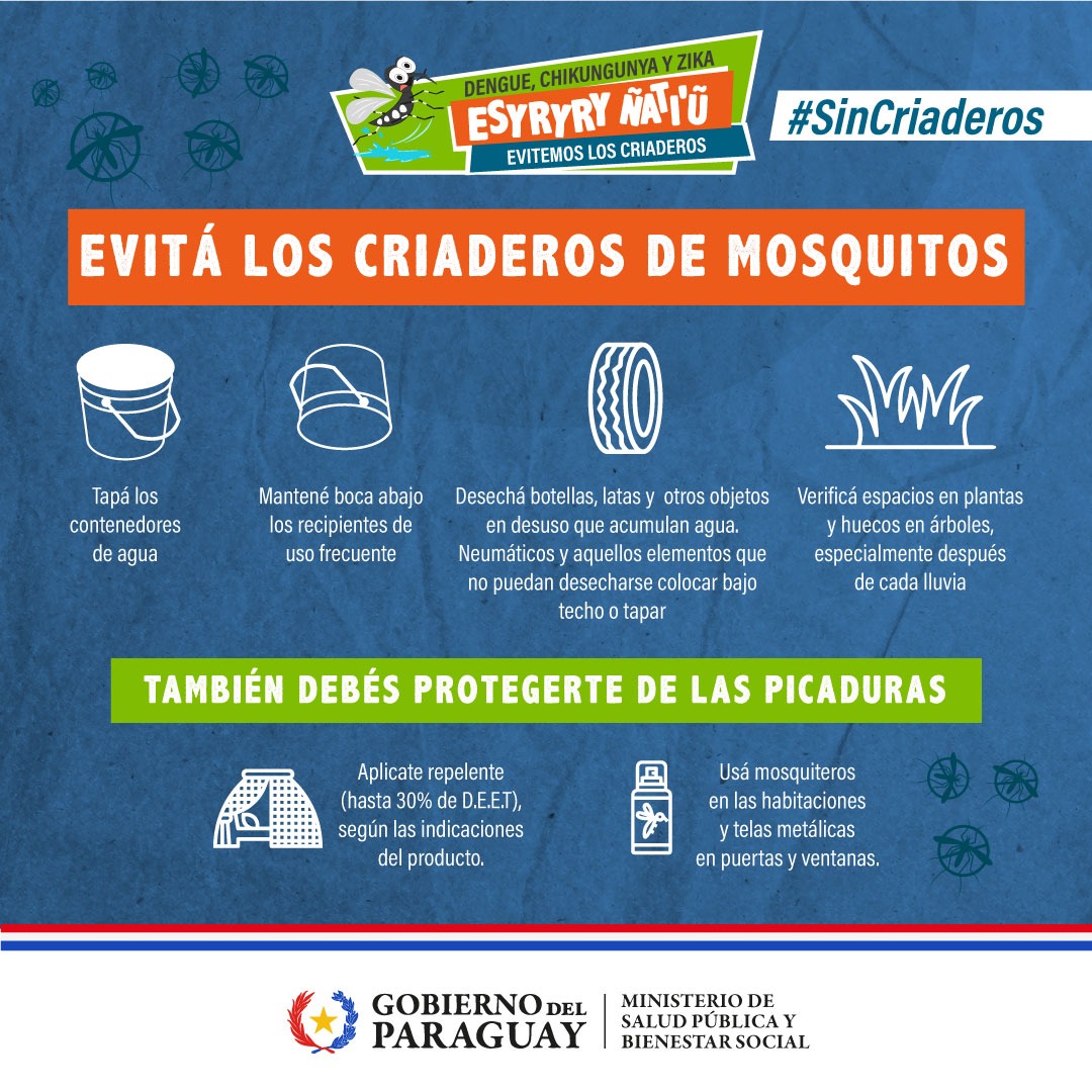- Urge la eliminación de criaderos, así como el uso de repelente y mosquitero.
