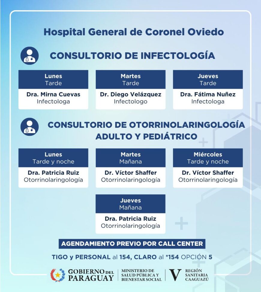 El Hospital General de Coronel Oviedo habilita oficialmente la oferta de pruebas de VIH, sífilis, hepatitis B y C, así como los consultorios de infectología que brindarán atención integral a personas con enfermedades infecciosas, incluyendo a personas con VIH. Esta iniciativa es parte de una colaboración interinstitucional entre el PRONASIDA y la Dirección General del Hospital General de Coronel Oviedo.