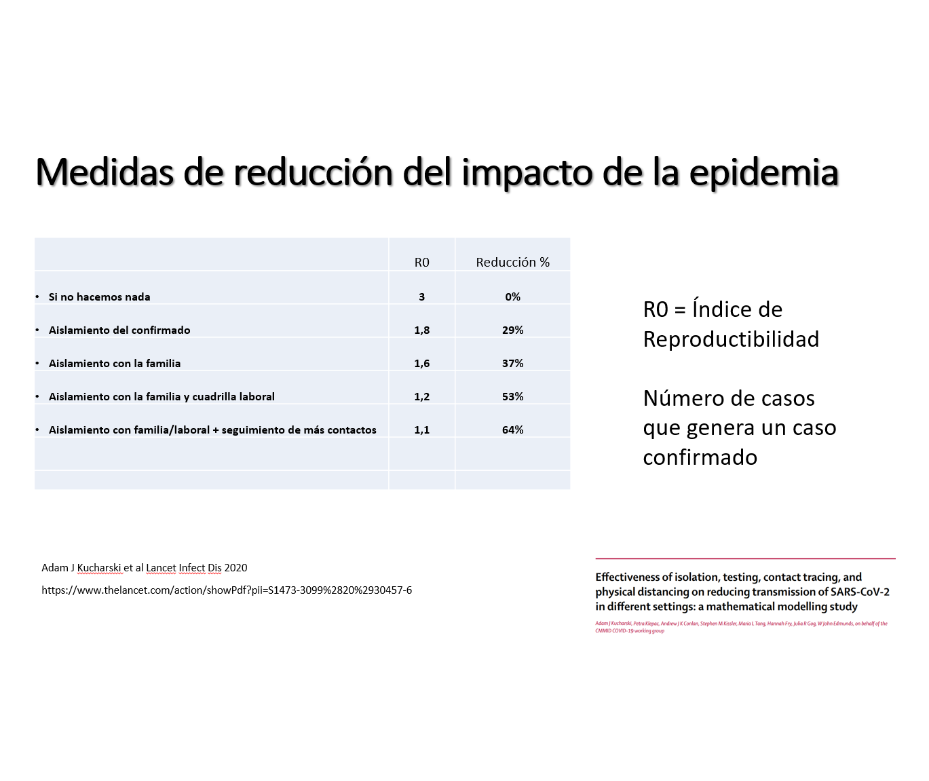 - La contagiosidad se reduce cerca de un 30% cuando el enfermo se aísla, 37% cuando queda en cuarentena con su familia y llega a un 53% si también se aíslan sus compañeros de trabajo.