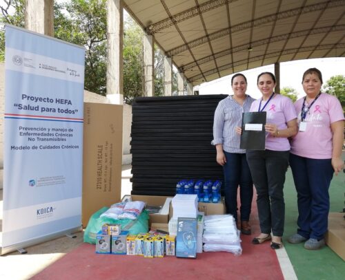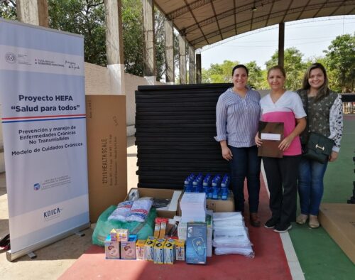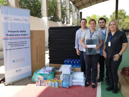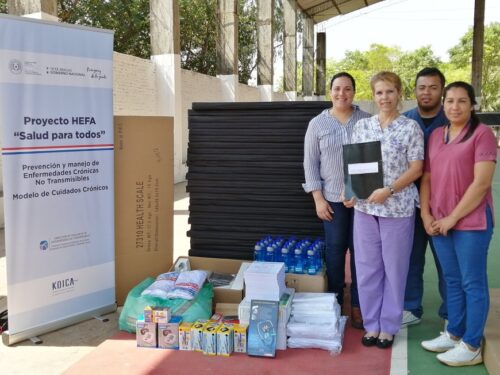 Se trata de basculas, tallimetro móvil, aparatos de presión, colchonetas, sábanas, remeras, toallitas, hoppies y útiles de oficina, que fueron donados por la Agencia de Cooperación Internacional de Corea (KOICA) a las USF, en el marco del Proyecto HEFA (HealthforAll – Salud para Todos).