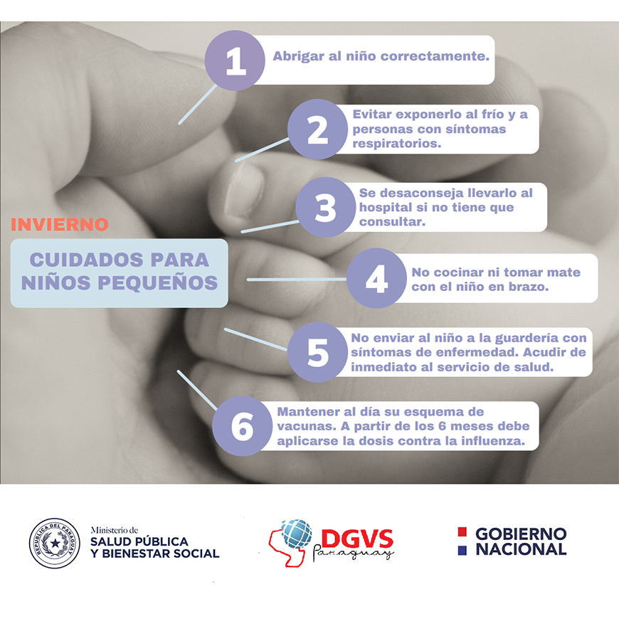 Mantener actualizado su esquema de vacunación. Niños a partir de los 6 meses de edad, que aún no recibieron la dosis antigripal este año, deben vacunarse. Esto impedirá que contraigan las formas graves de la influenza.