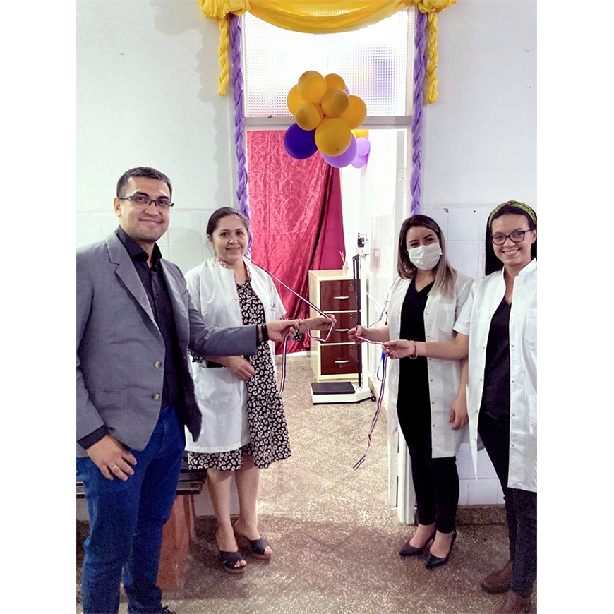 La habilitación del consultorio se llevó a cabo con presencia del Lic. Eduardo Enciso, jefe del Departamento de Prevención y Control de Factores de Riesgo de la cartera sanitaria, junto con personal del citado nosocomio: la Dra Rosa Gamarra, Directora Médica; la nutricionista y coordinadora del consultorio de obesidad, Lic. Laura Centurión; y la Lic. Gabriela Rodríguez, jefa de nutrición del Hospital de Lambaré.