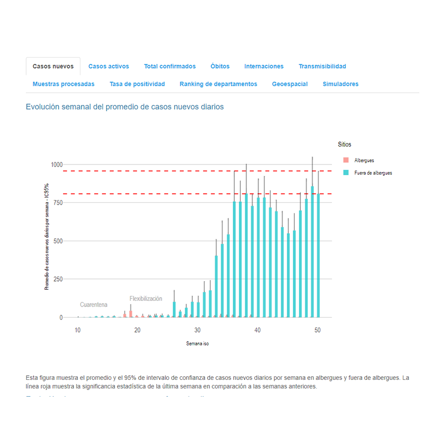 El intervalo de confianza del 95% del promedio de la tasa de positividad diaria indica que aproximadamente 1 de cada cuatro pruebas laboratoriales resultan positivas.