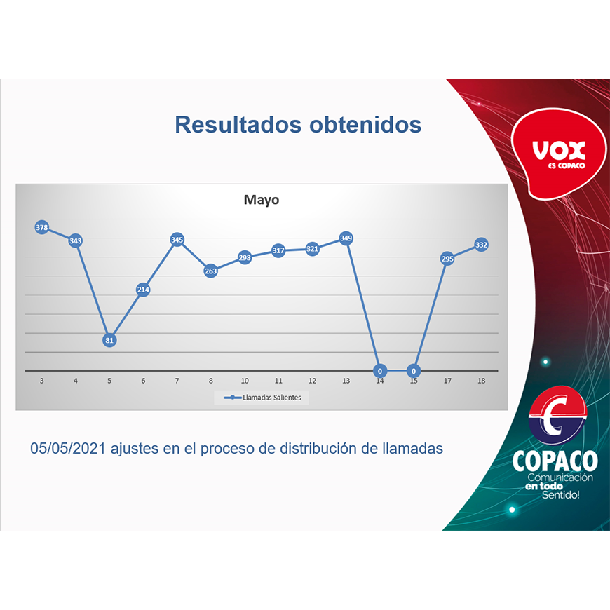 La afectividad de atención alcanzada en este periodo es de 57%, con una duración de llamada de 02:12, en promedio. Si el usuario no contesta al primer llamado telefónico, se le remite un mensaje vía mensajería explicándole el motivo de la llamada e indicando la posibilidad de realizar un contacto por WhatsApp, modalidad que tiene gran aceptación.