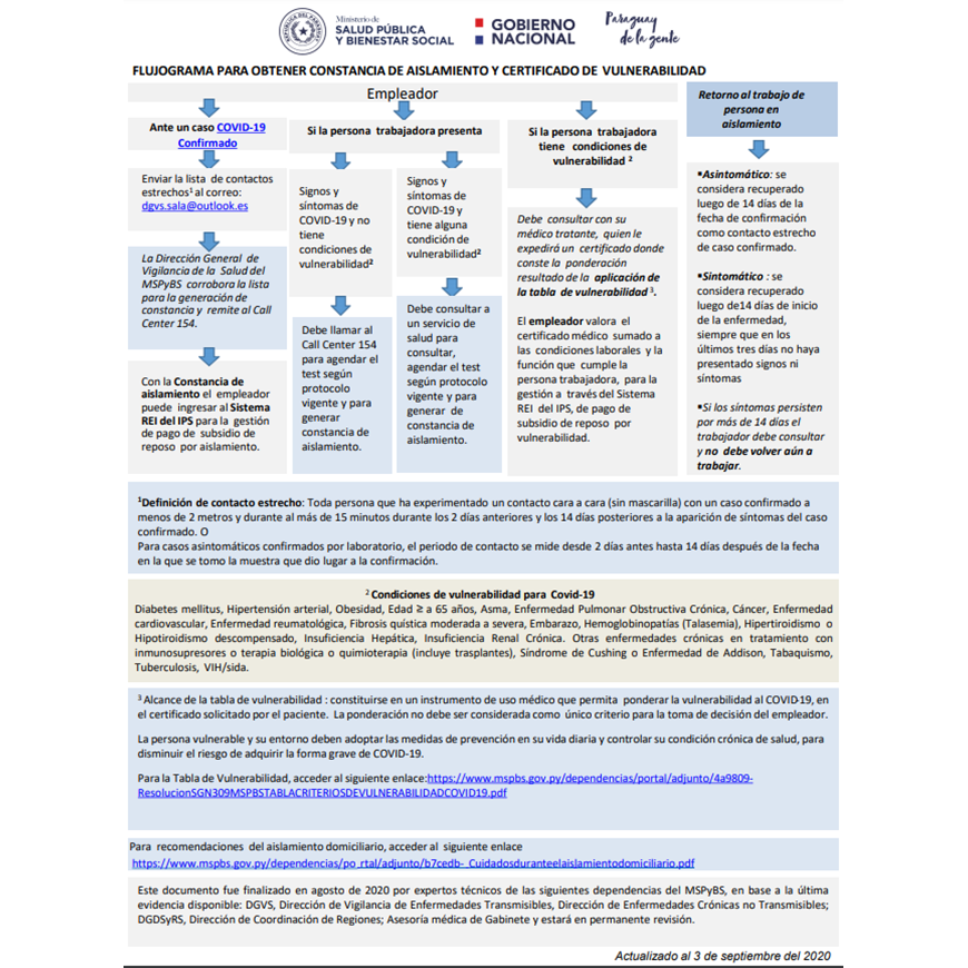 Procedimientos que deben tenerse en cuenta ante un caso sintomático o positivo, medidas para trabajadores que tienen condiciones de vulnerabilidad y el retorno al trabajo.