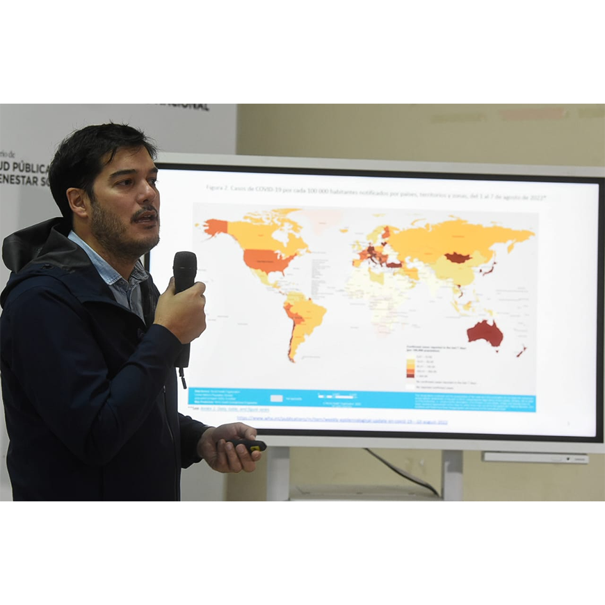 Así también, el epidemiólogo expusó acerca de la situación epidemiológica a nivel global. Indicó que evidencia una ola tardía en diferentes países, como Japón, Corea del Sur, Taiwán, Australia, Nueva Zelanda, que no habían sido golpeados por la pandemia, actualmente se encuentran en una fase importante de casos y fallecidos. Mientras Europa del Este experimenta una curva en ascenso, en las Américas estamos saliendo de esta ola; sin embargo, Chile está presentando un leve estancamiento con esta última ola. Sin bien no muestra aumentos importantes, tampoco observa descensos significativos.