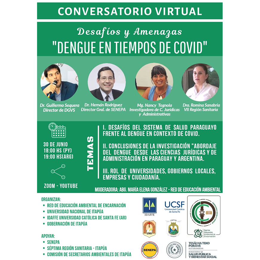 El Conversatorio virtual sobre «Desafíos y amenazas del Dengue en tiempos de Covid» contará con destacados expositores del ámbito de la salud, entre ellos figuran: