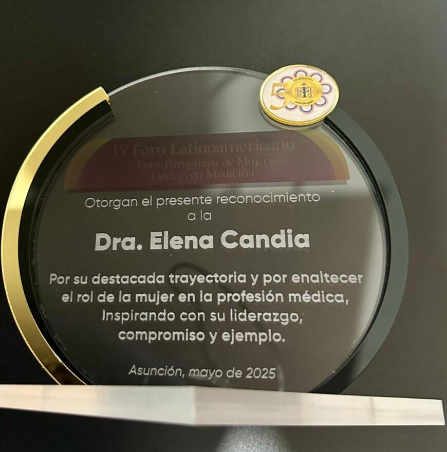 Por otra parte, en el marco del IV Foro Latinoamericano y I Foro Paraguayo de Mujeres Líderes en Medicina, ambas profesionales recibieron un reconocimiento por su destacada trayectoria y por enaltecer el rol de la mujer en la profesión médica, inspirando con su liderazgo, compromiso y ejemplo.