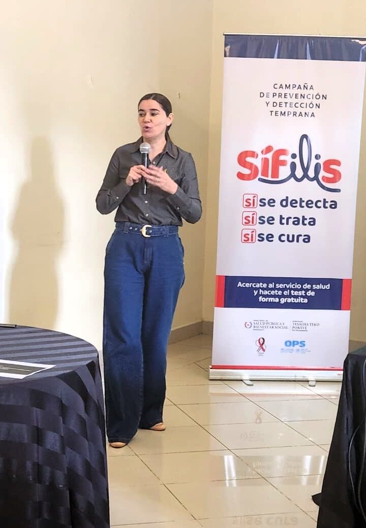 Finalmente, la Dirección de Enfermería y la Dirección de Obstetricia del MSPBS presentaron los aspectos normativos y legales vigentes, promoviendo el debate sobre la necesidad de fortalecer el trabajo coordinado y complementario entre ambas profesiones con el objetivo común de eliminar la sífilis en Paraguay.