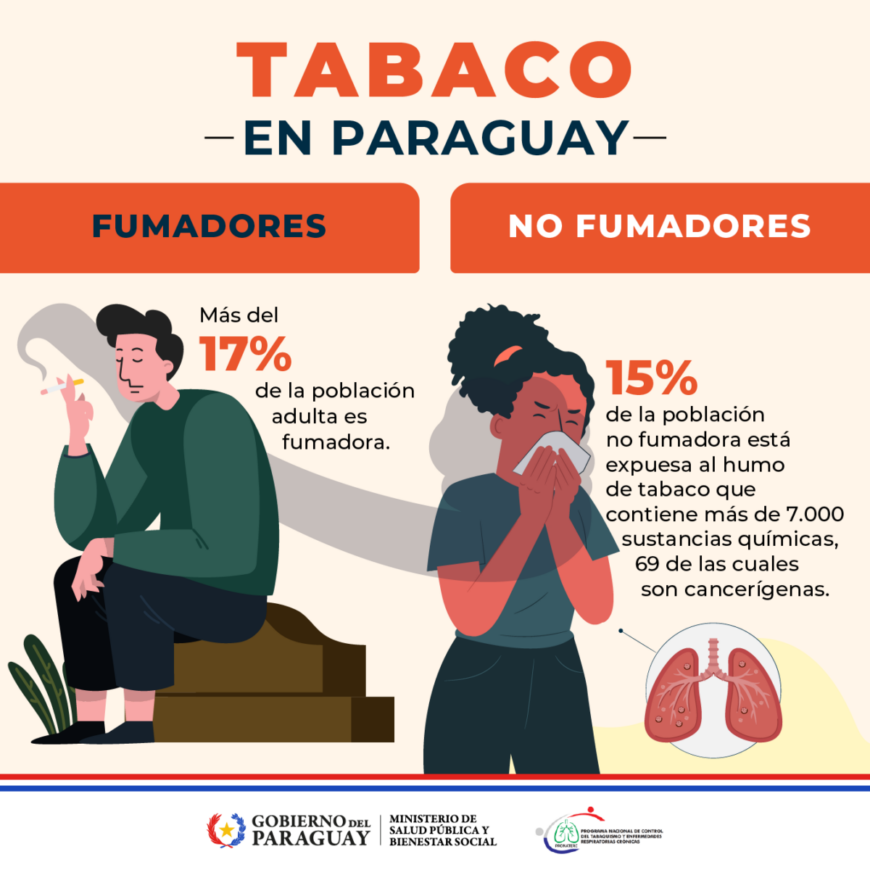 En Paraguay, alrededor de 12 muertes diarias están estrechamente vinculadas al consumo del tabaco, de primera o de segunda mano. Esto equivale a unas 4.515 defunciones anuales, cuya cifra corresponde al 13.7% del total de fallecimientos ocurridos en el territorio nacional.