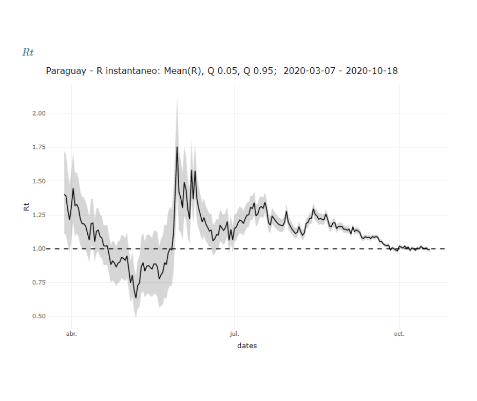 En cuanto a la transmisibilidad (Rt) o promedio de contagios de casos positivos se muestra estable cercano a 1 desde finales de setiembre.