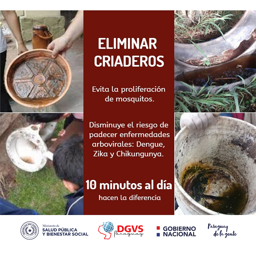 - Se alienta a persistir en las acciones de control de entornos. Desechar toda agua acumulada en recipientes (tapitas, botellas), sobre todo después de una lluvia, así como objetos en desuso y eliminarlos con la basura.