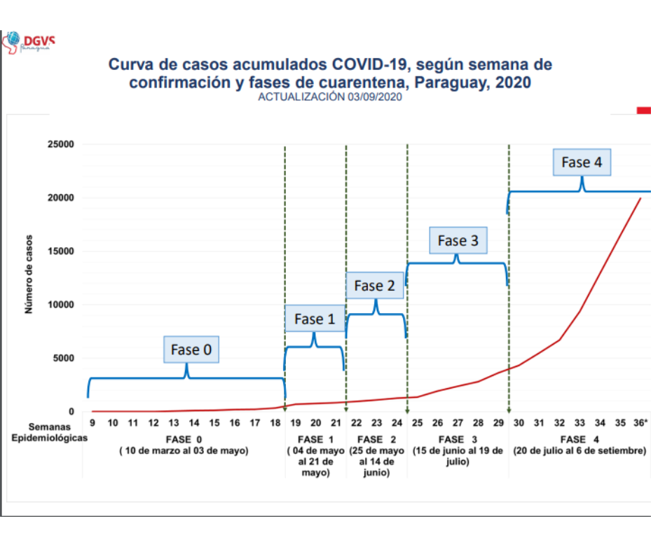 Sequera afirma que el ritmo de contagios que tenemos en Paraguay todavía es aceptable en relación a otros países donde la situación fue bastante catastrófica, como el caso de Perú, Bolivia, Chile y Brasil, donde la duplicación de casos se registraba cada 7 días, incluso menos.