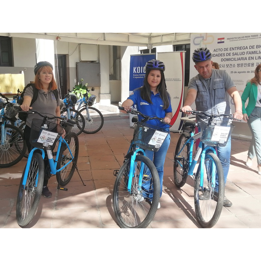 El Ministerio de Salud en conjunto con la KOICA hizo entrega de 60 bicicletas a las Unidades de Salud de la Familia (USF) de la ciudad de Limpio, en el marco del Proyecto «HEFA – Salud para todos». En la ocasión se contó con la participación de la Viceministra de Rectoría y Vigilancia de la Salud, Dra. Lida Sosa; la Dra. Gilda Benitez, de la Dirección de Vigilancia de Enfermedades No Transmisibles y otros referentes del ámbito sanitario.