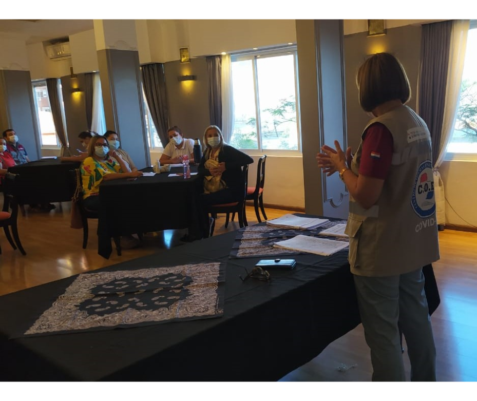 Personal de salud de las Unidades de Salud de la Familia – USF de Capital y de la brigada del Departamento de Enfermería de la XVIII Región Sanitaria se preparan para la ejecución de estudios de seroprevalencia de COVID-19 en barrios de Asunción.