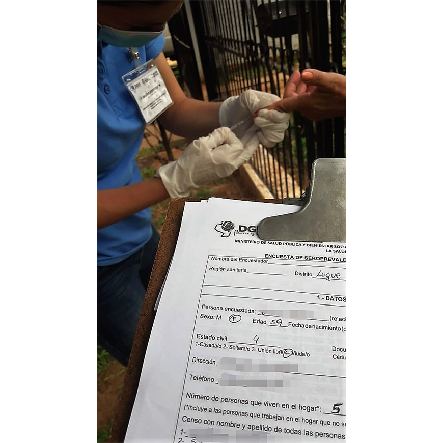 En el país, el estudio de seroprevalencia COVID-19 inició en diciembre, en Ciudad del Este, donde se efectuaron visitas domiciliarias. Posteriormente se aplicó esta actividad en Asunción y el departamento Central donde actualmente continúan los trabajos de investigación.