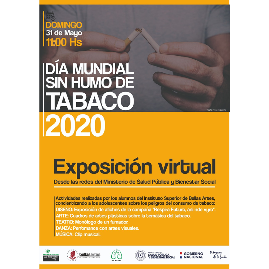 1. Exposición de afiches de la muestra “Respira futuro, ani nde vyro”: 48 afiches realizados por alumnos del 4to año de la carrera de Diseño gráfico del Instituto Superior de Bellas artes, concientizando a los adolescentes sobre los peligros del consumo de tabaco.