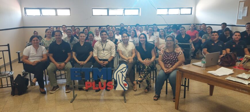 Se brindó, además, una capacitación sobre la estrategia ETMI Plus. En este contexto fueron capacitados 92 funcionarios de salud referentes de los diversos servicios que conforman la zona norte de San Pedro, con el objetivo de que puedan replicar la estrategia ETMI Plus y garantizar la implementación del Plan de Descentralización de la Atención, Diagnóstico Precoz y Tratamiento Oportuno de VIH en sus respectivos establecimientos de salud. Entre ellos figura: el Hospital General de Santa Rosa, Hospital Regional de San Pedro, Centro de Salud Doroteo Colman Navarro de Liberación, Centro de Salud Nueva Germania, Centro de Salud de Chore y Unidad de Salud Familiar de General F.I. Resquín. Acompañaron esta capacitación por parte del PRONASIDA: la Dra Celeste Ramírez, encargada de la estrategia ETMI Plus; y las licenciadas Deysi Jara y Cristina Panigali.