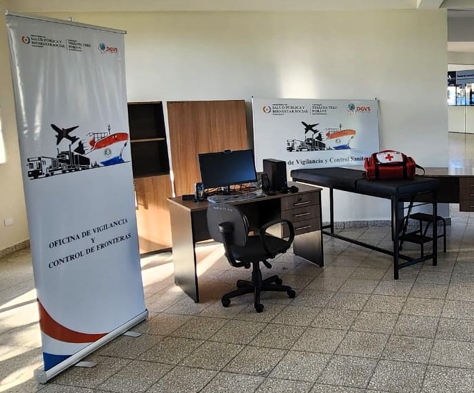 Con el objetivo de reforzar la vigilancia sanitaria en el paso fronterizo terrestre de Pedro Juan Caballero, se ha dotado de un importante suministro de insumos y mobiliarios que permitirán mejorar las condiciones de control sanitario en este importante punto de Entrada. Esta acción responde a la necesidad de garantizar la seguridad y salud pública de la población local y de los viajeros que cruzan a diario hacia Paraguay desde Brasil.