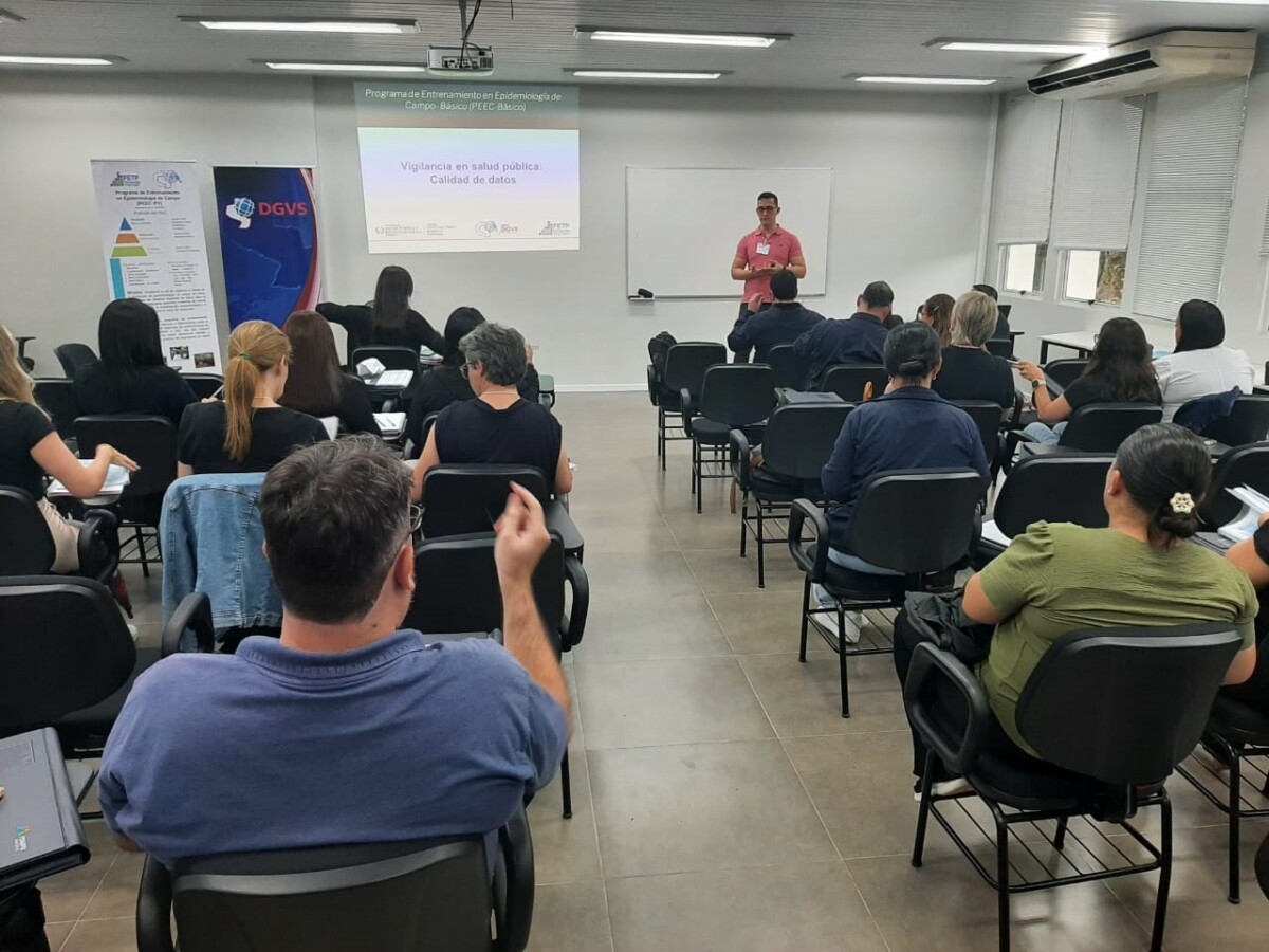 La clase inaugural del primer taller fue realizada por la Dra. Águeda Cabello, directora general de Vigilancia de la Salud del Ministerio de Salud Pública, con el acompañamiento de docentes y tutores egresados del Programa de Entrenamiento de Epidemiología de Campo – PEEC Paraguay, y del Programa de Capacitación en Epidemiología Aplicada a los Servicios del Sistema Único de Salud – EpiSUS de Brasil.