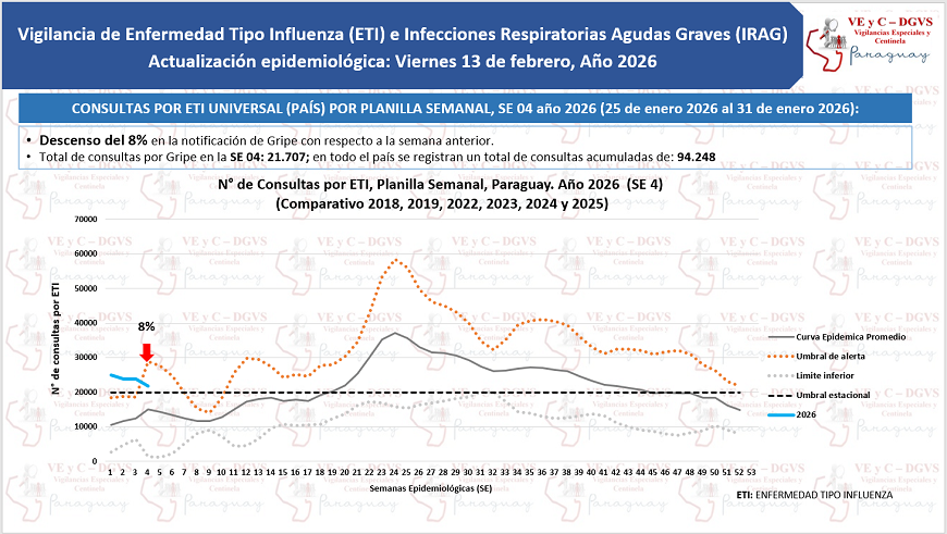 Luego de tres semanas consecutivas de paulatino descenso de consultas a nivel país, la curva de tendencia se posiciona por debajo del umbral de alerta.