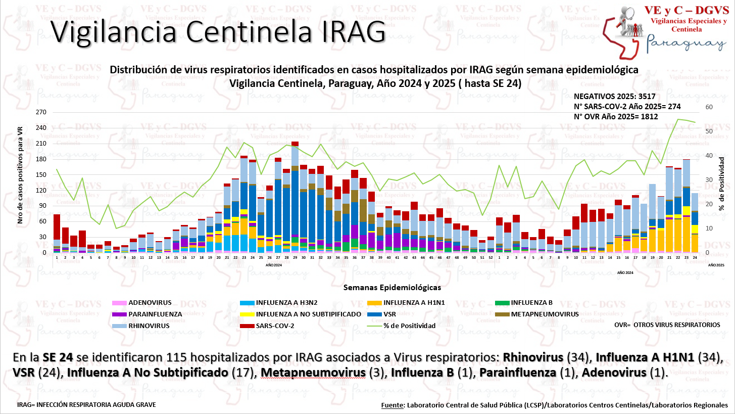 Contar con la dosis anual de la vacuna contra la Influenza y el COVID-19 es clave para reducir el riesgo de hospitalizaciones y muertes asociadas por estas enfermedades. Así también es importante mantener al día el esquema de vacunación regular de los niños, principalmente en los menores de 5 años. Consultar los puntos de vacunación en: vacunate.gov.py