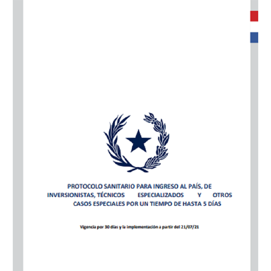Las personas que ingresen a Paraguay por motivos de asistencia técnica, empresariales o de interés económico para el país y otros casos especiales, por un período de tiempo de hasta 5 (cinco) días, deberán cumplir con una serie de exigencias establecidas ante el avance de la pandemia por COVID-19.
