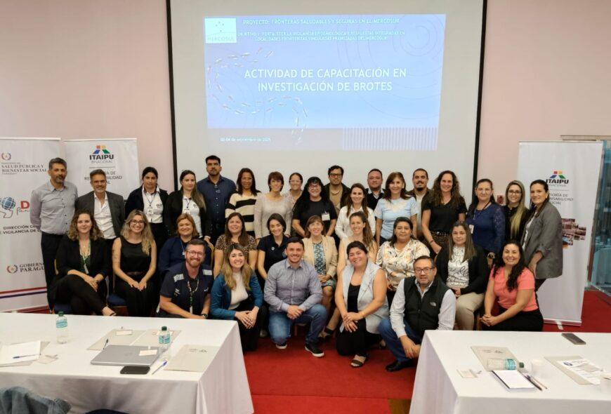 Del 2 al 4 de septiembre se lleva adelante el Taller de Capacitación en Investigación de Brotes, en el marco del proyecto Fronteras Saludables y Seguras del MERCOSUR. Esta actividad forma parte del Objetivo 1 del proyecto: fortalecer la vigilancia epidemiológica y las respuestas integradas en localidades fronterizas priorizadas del bloque regional.