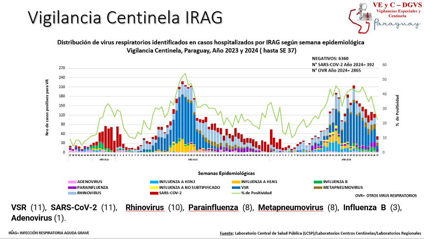 En este periodo, los virus respiratorios identificados entre los pacientes hospitalizados, además del virus sincitial, el SARS-CoV2 y Rhinovirus, fueron casos de Parainfluenza, Metapneumovirus, Influenza B y Adenovirus.