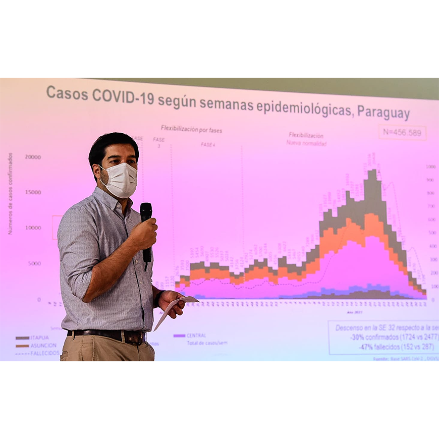 El nivel de transmisibilidad de la epidemia (Rt) actualmente se encuentra por debajo de 1. Este indicador marca que el ritmo de la epidemia está decreciendo, declaró el titular de Vigilancia de la Salud, Guillermo Sequera al dar a conocer sobre la situación epidemiológica de COVID-19 en el país. Este y otros datos se encuentran disponibles en la página web de Vigilancia de la Salud en www.dvgvs.mspbs.gov.py