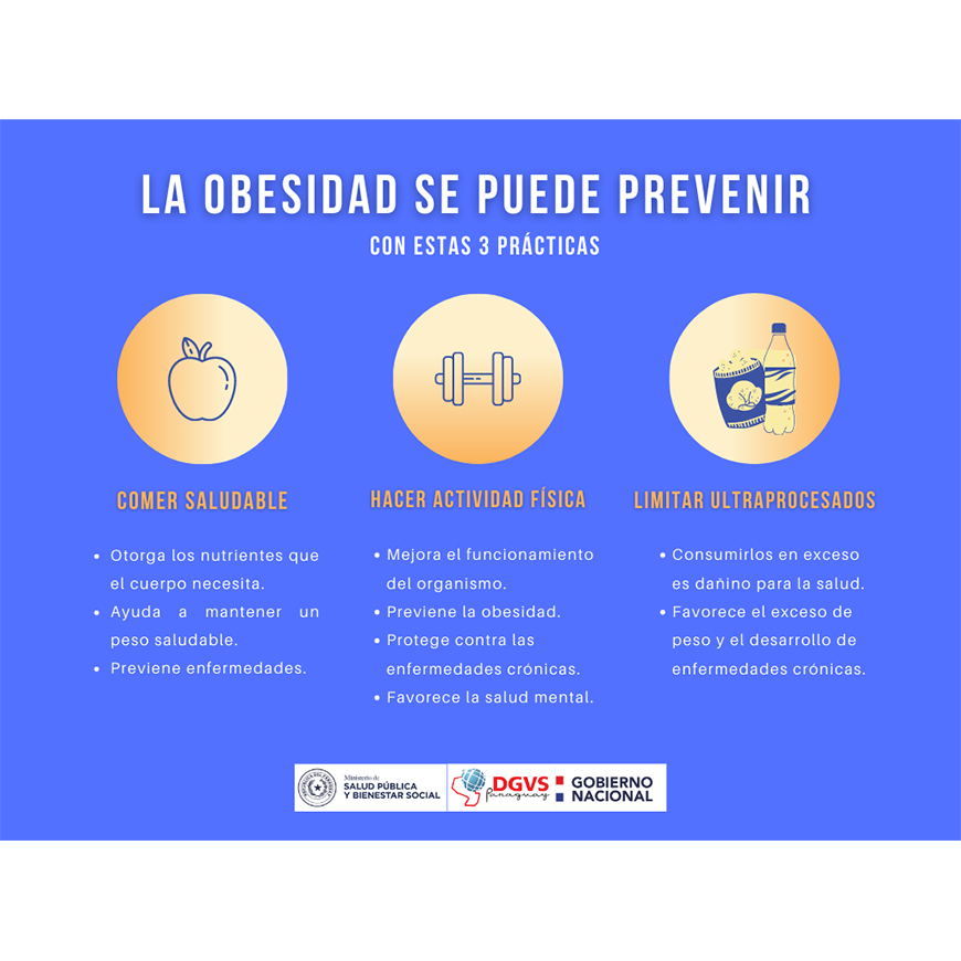 En recordación al Día Mundial contra la Obesidad, la Dirección de Vigilancia de Enfermedades No Transmisibles destaca tres sencillos consejos que pueden ponerse en práctica desde la niñez para prevenir el exceso de peso y sus consecuencias: