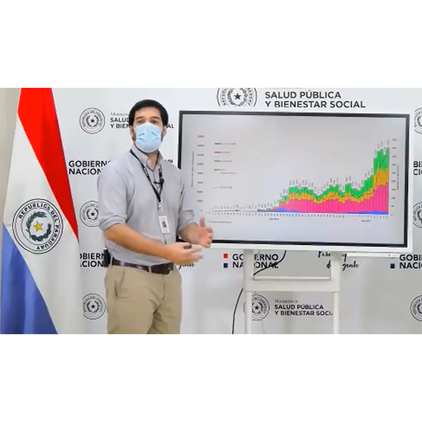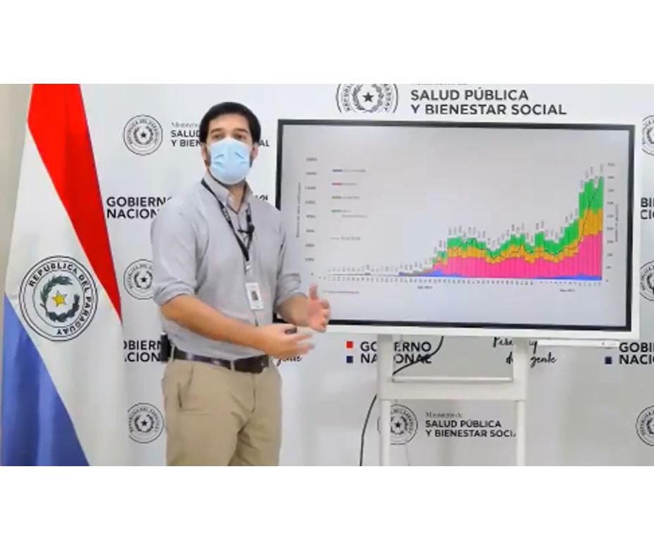 Señaló que Paraguay continúa con una alta meseta, con proporciones tres veces mayor a lo registrado cinco meses atrás de la epidemia cuando los casos por semana alcanzaban 400 casos por semana. Desde finales de febrero e inicio de marzo esto se incrementó estrepitosamente llegando actualmente a 14.000 casos por semana. Casos de infectados con el virus SARS-CoV2 se verifican en prácticamente todo el territorio nacional. El alto funcionario de Salud Pública asocia este acelerado crecimiento al ingreso de la variante brasileña P1 de COVID-19 que es 2.5 veces más contagiosa.