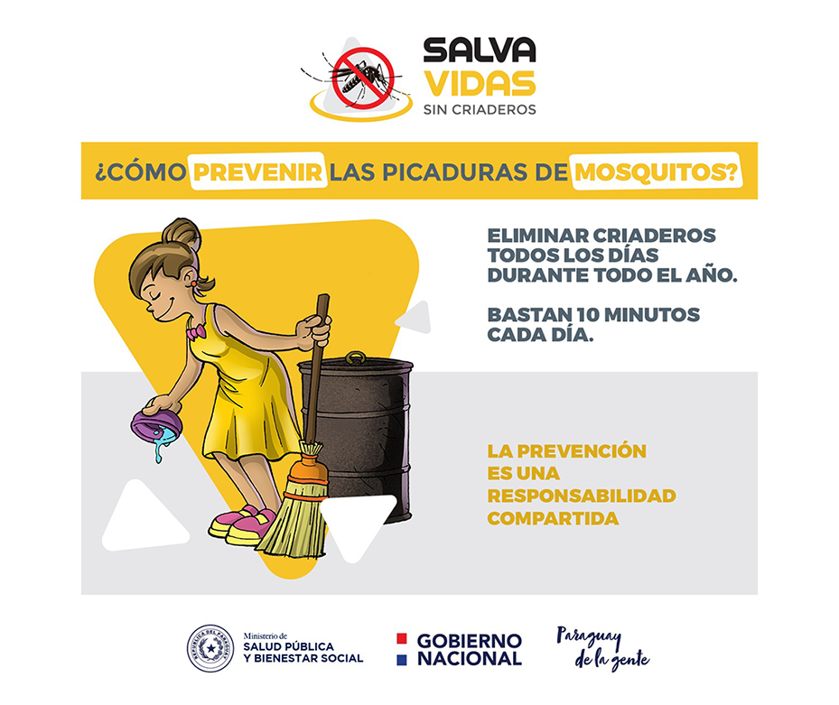 Se recuerda a la ciudadanía la importancia de dedicar 10 minutos al día para realizar la inspección de entornos y destrucción de potenciales criaderos de mosquitos. Es fundamental desechar el agua acumulada de recipientes y objetos de desuso que puedan acumularla, y tapar el agua que va a ser utilizada.