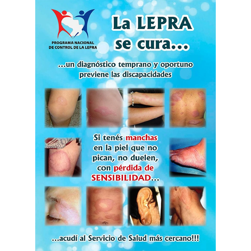 Se caracteriza por manchas en piel que no pican, ni duelen y presentan insensibilidad en la zona. Esta enfermedad es curable. El diagnóstico y tratamiento son provistos gratuitamente por el Ministerio de Salud.