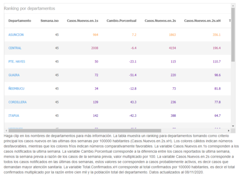 La versión actual del Reporte Semanal COVID-19 permite acceder a un ranking y reportes de la situación por departamentos: https://bit.ly/3nBbg5j