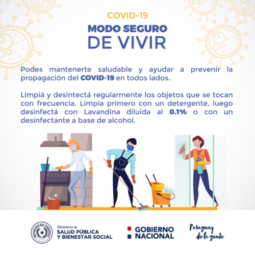- Limpiar y desinfectar superficies de alto contacto de forma periódica, como picaportes de puertas, mesas y sillas.