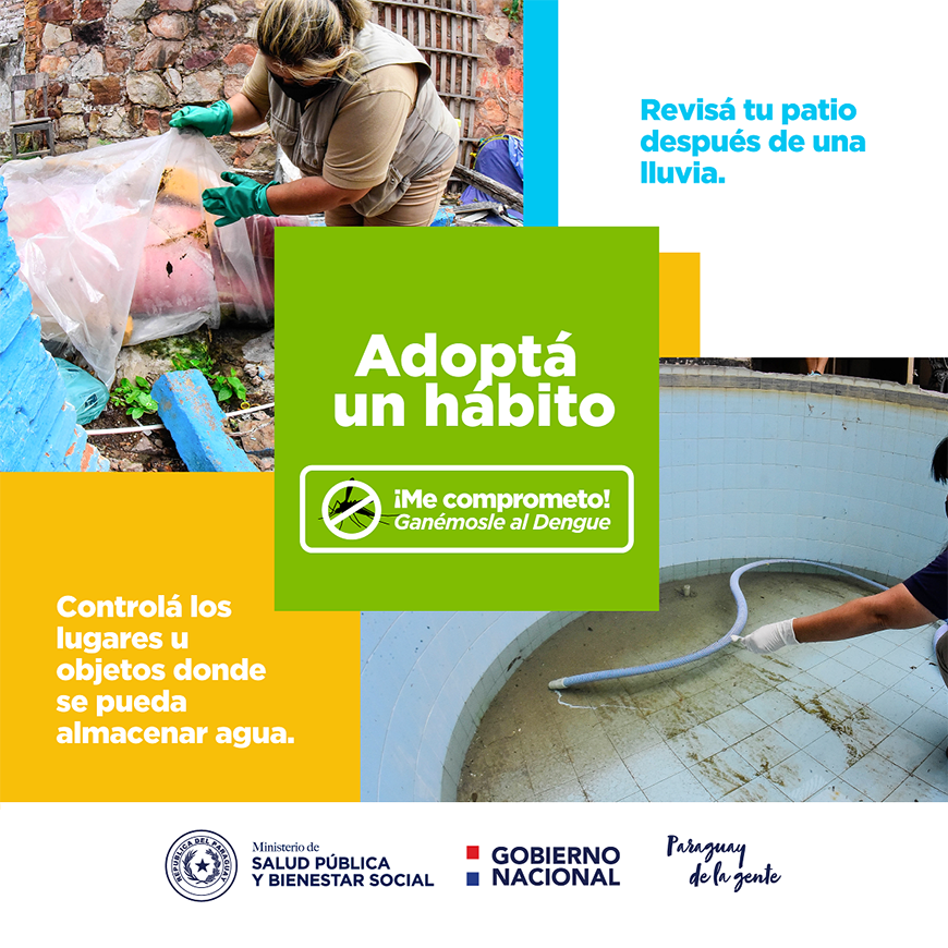 Se insiste a la ciudadanía a realizar una revisión diaria del patio y del interior de la casa y desechar todo objeto en desuso y aquellos objetos inservibles que no puedan desecharse como aparatos domésticos, neumáticos u otros, deben colocarse bajo techo o cubrirse de forma a evitar que puedan acumular agua.