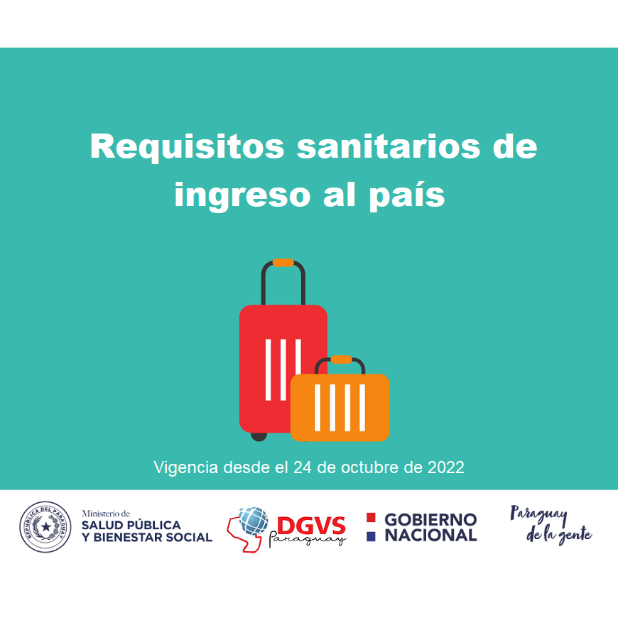 Desde este lunes 24 de octubre de 2022, rige el nuevo documento de requisitos sanitarios para el ingreso a Paraguay, que establece: