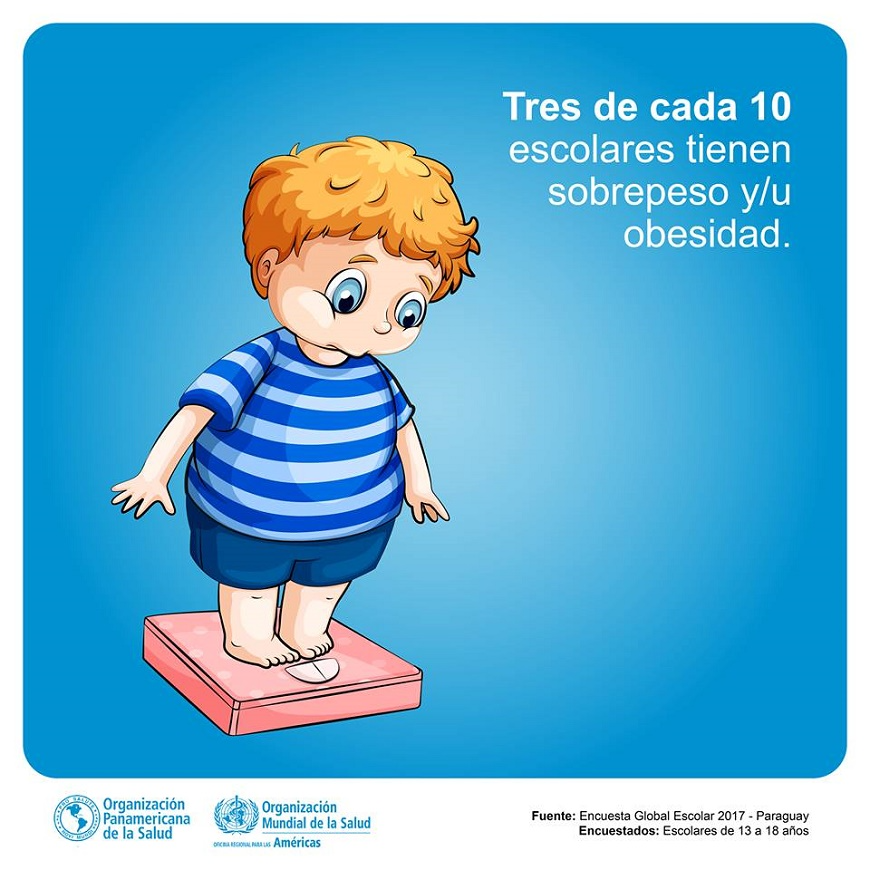 De acuerdo a datos aportados por el Sistema de Vigilancia Alimentario Nutricional (SISVAN-INAN.MSPBS), en el país, el 21,6% de niños y adolescentes de 5 a 19 años tiene sobrepeso y el 13% padece de obesidad.