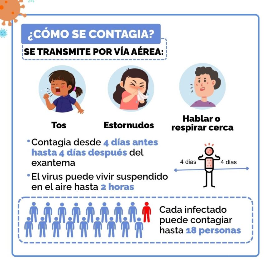 Consulta temprana. En caso de presentar síntomas (fiebre, secreción nasal, conjuntivitis y/o lesiones en piel), buscar atención médica de inmediato, utilizar tapabocas y extremar las medidas de higiene como el lavado frecuente de manos.