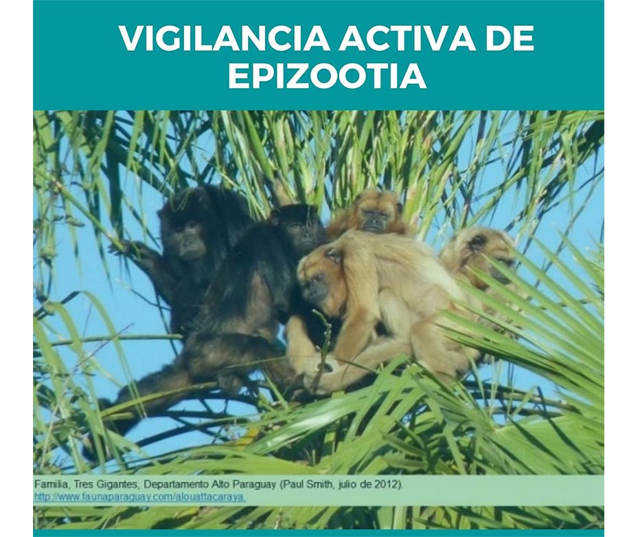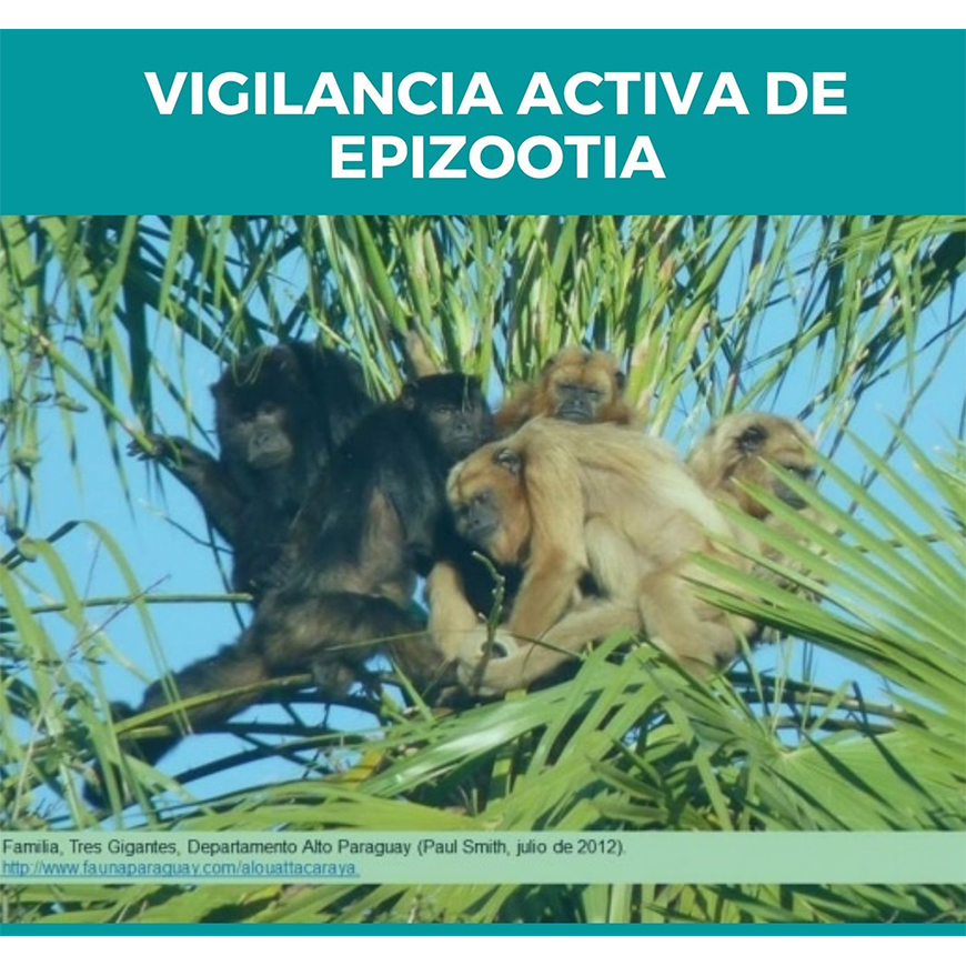 En este contexto, el Ministerio de Salud Pública y Bienestar Social viene realizando la vigilancia de epizootias en primates no humanos (monos) con sospecha de fiebre amarilla en todo el territorio nacional, con énfasis en los Parques Nacionales, Reservas Biológicas y Zoológicos, que cuentan con poblaciones de monos. Para esto, se cuenta con el apoyo técnico y logístico de varias instituciones como el SENACSA, Itaipú Binacional, Asociaciones científicas, entre otros.