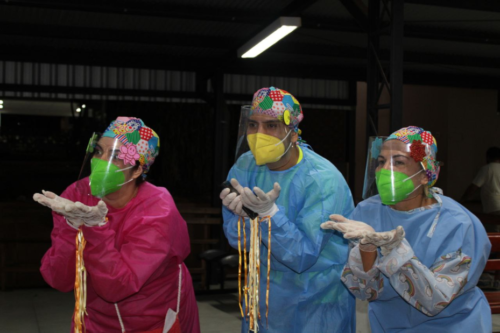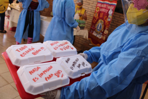 Llevando palabras de aliento, alimentos y oraciones, buscan encender una luz de esperanza en medio de esta dura pandemia, en pacientes y sus familias, y en el personal sanitario .